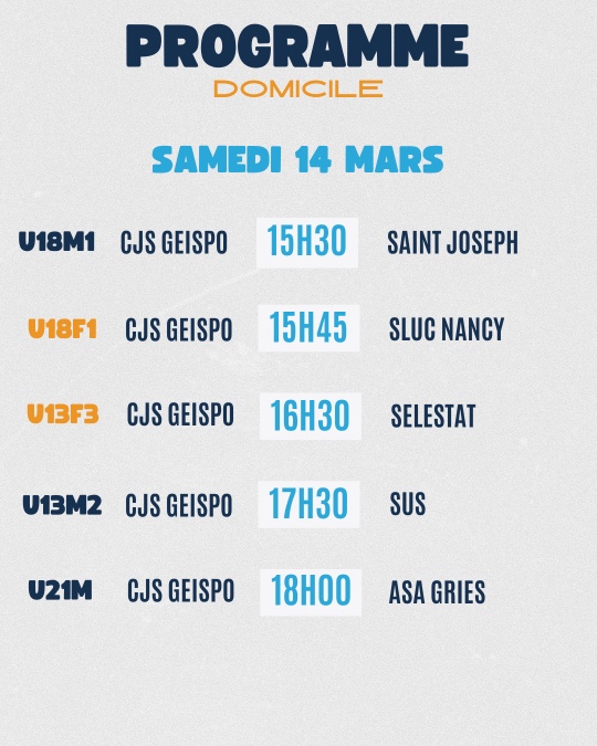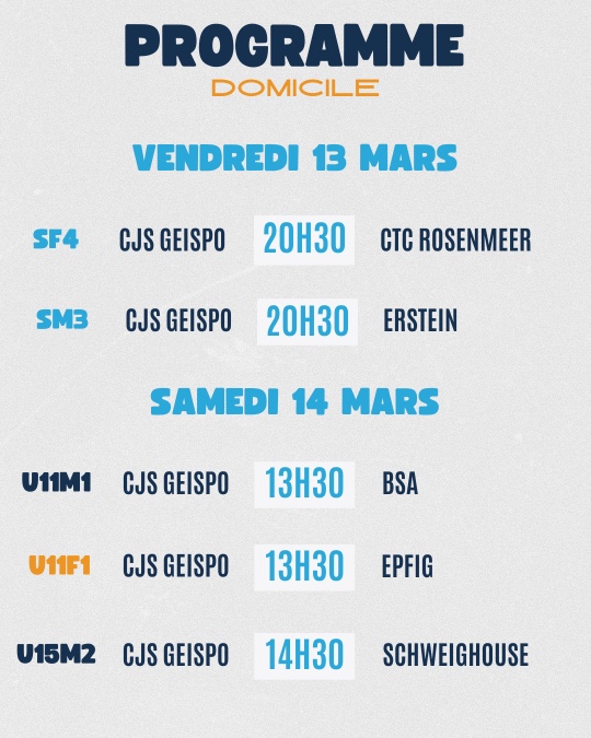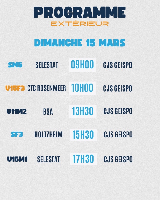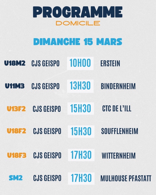 Le programme des matchs pour nos équipes du CJS Geispolsheim ! 🤩