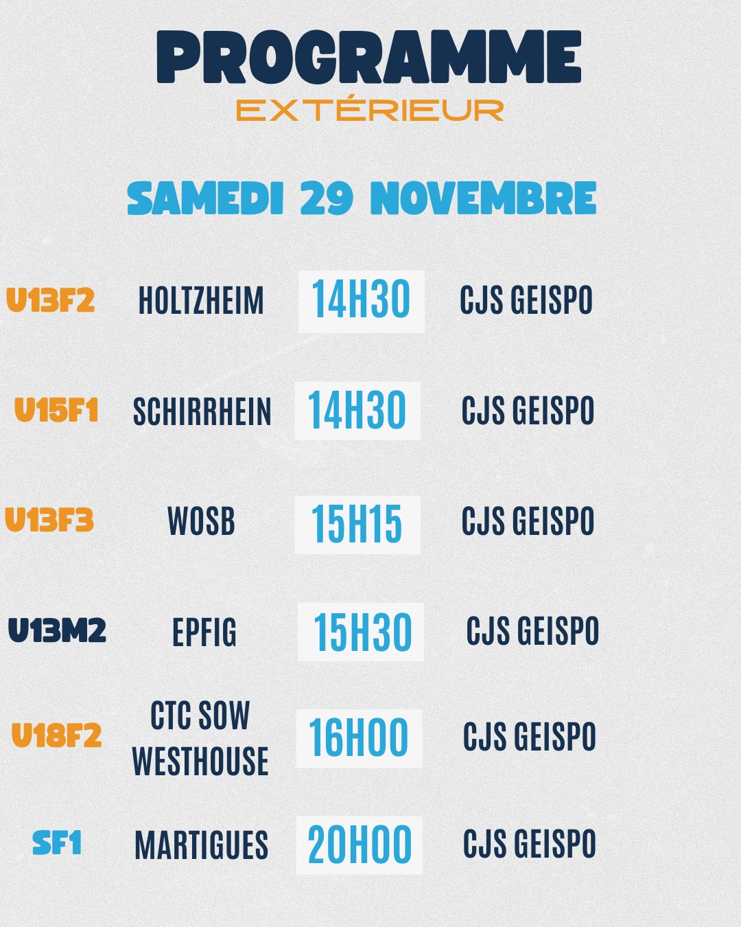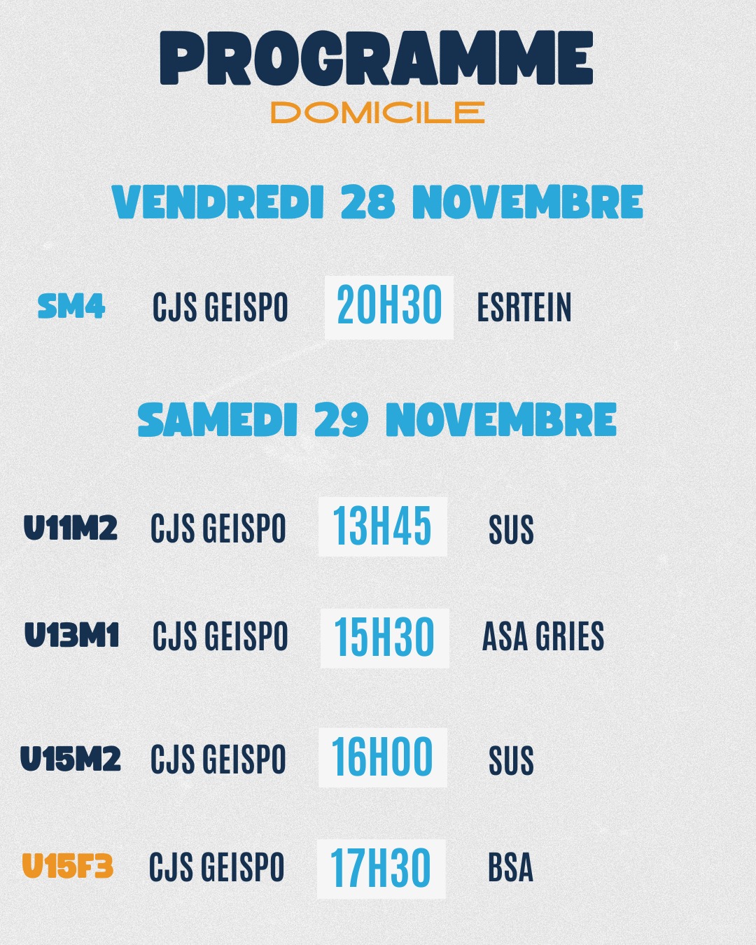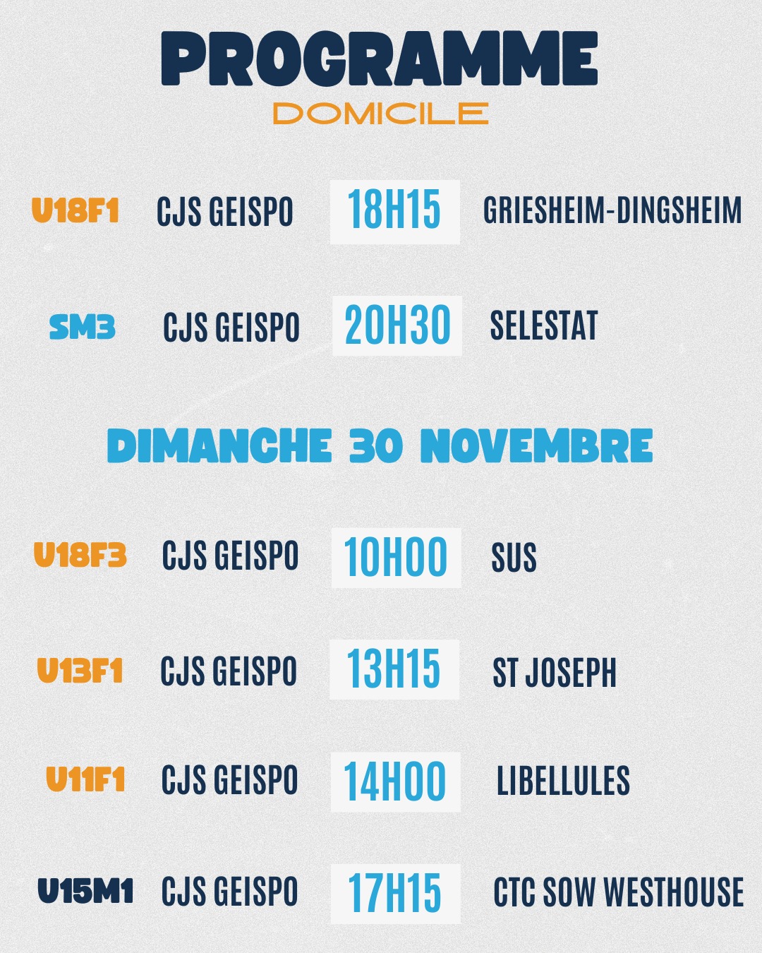 Le programme des matchs pour nos équipes du CJS Geispolsheim ! 🤩